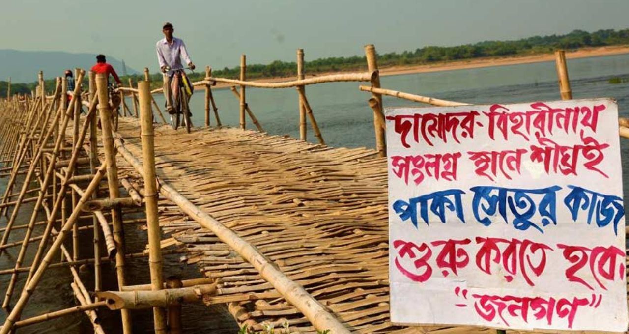 Bardhaman Damodar Bridge: ১৭ বছর আগে প্রয়াত কেন্দ্রীয় ইস্পাতমন্ত্রী রামবিলাস পাসোয়ানের জমানায় বার্নপুরের দামোদর নদীর ওপর একটি কংক্রিট সেতু নির্মাণের জন্য ৫০ কোটি টাকার অনুমোদন দেওয়া হয়েছিল। অস্থায়ী শিলান্যাসও হয়েছিল। কিন্তু আজও সেতুর কাজ শুরু হয়নি। বর্ষার সময়ে ভেসে যাচ্ছে অস্থায়ী বাঁশের সেতু। ফলে বাঁকুড়া, পুরুলিয়া ও পশ্চিম বর্ধমান জেলার মানুষ বিপজ্জনক ভ্রমণ করতে বাধ্য। স্থানীয়রা দাবি করছেন, সেতু নির্মাণের জন্য সরকারি উদ্যোগ জরুরি।