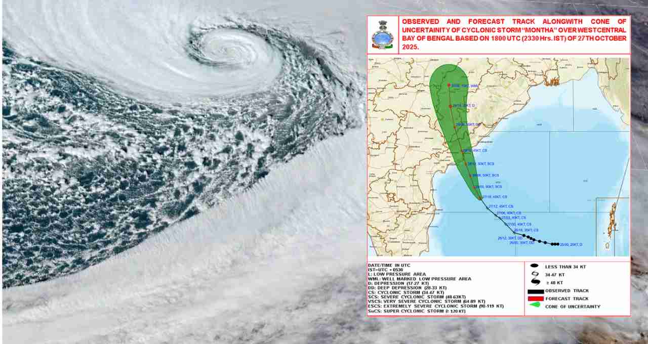 ঘূর্ণিঝড় মোন্থা: ঘূর্ণিঝড় ‘মোন্থা’ (Cyclone Montha) আজ ২৮ অক্টোবর রাতের মধ্যে অন্ধ্রপ্রদেশের উপকূলে আঘাত হানতে পারে বলে আশঙ্কা করা হচ্ছে। এই ঘূর্ণিঝড়টি দক্ষিণ-পশ্চিম এবং পশ্চিম-মধ্য বঙ্গোপসাগরের উপর তৈরি হয়েছে এবং এটি দ্রুত উত্তর-উত্তর-পশ্চিম দিকে অগ্রসর হচ্ছে। ভারতীয় আবহাওয়া দফতর (IMD) অনুসারে, এটি অন্ধ্রপ্রদেশের কাকিনাডার কাছে মছলিপত্তনম এবং কালিঙ্গাপত্তনমের মাঝামাঝি স্থানে ল্যান্ডফল করবে। এই সময় ঘণ্টায় ১১০ কিলোমিটার বেগে বাতাস বইতে পারে, যার ফলে ব্যাপক ক্ষয়ক্ষতির আশঙ্কা রয়েছে। এই বিপদকে মাথায় রেখে অন্ধ্রপ্রদেশ, ওড়িশা, তামিলনাড়ু এবং পুদুচেরিতে উচ্চ সতর্কতা জারি করা হয়েছে।