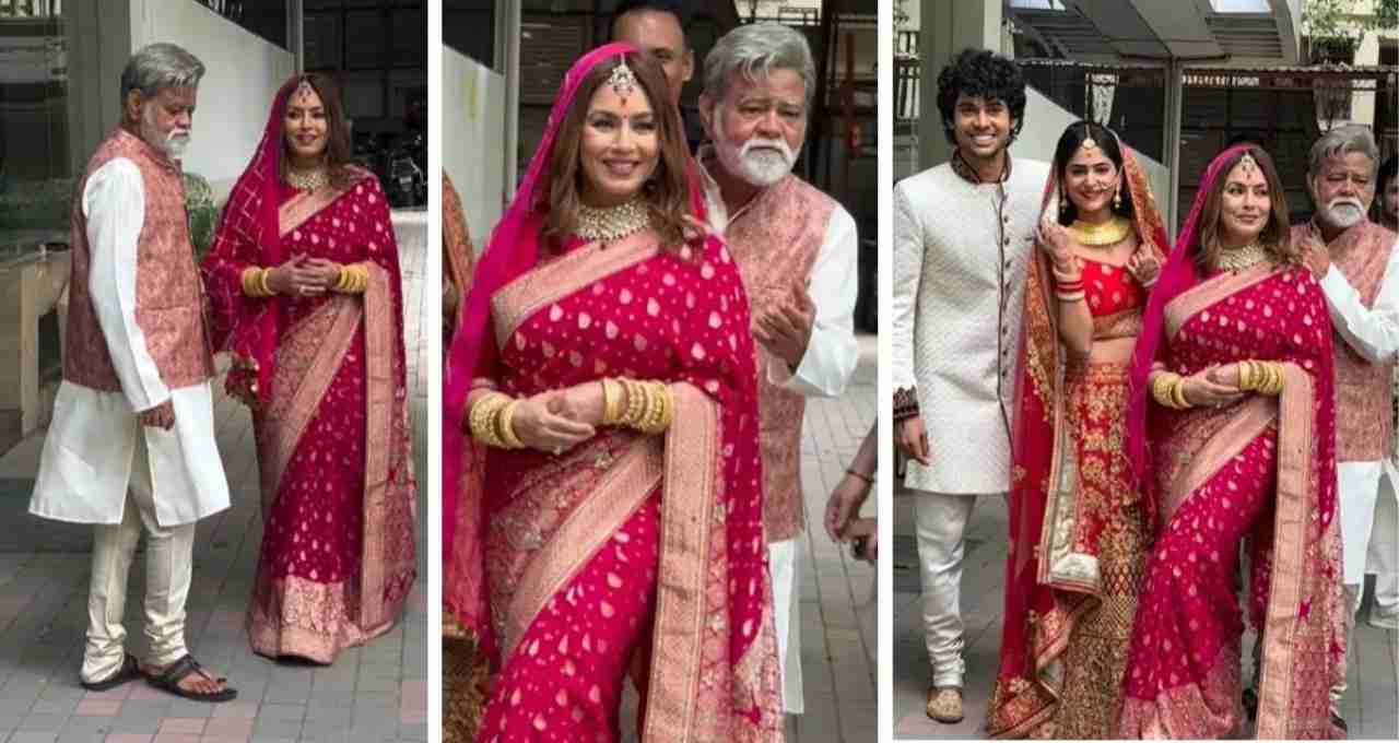 ভিডিওতে দেখা যাচ্ছে, মহিমা চৌধুরী লাল শাড়িতে সেজে, মাং টিকা, গহনা এবং চূড়া পরে অত্যন্ত সুন্দরী লাগছিলেন। তাঁর সঙ্গে অভিনেতা সঞ্জয় মিশ্রকেও ঐতিহ্যবাহী বর-সাজে দেখা গেছে। দুজনেই পাপারাজ্জিদের সামনে পোজ দেন এবং সেখানে উপস্থিত লোকদের দিকে তাকিয়ে হেসে বললেন — “বিয়েতে আসতে পারেননি, তাই মিষ্টি খেয়ে যান।”